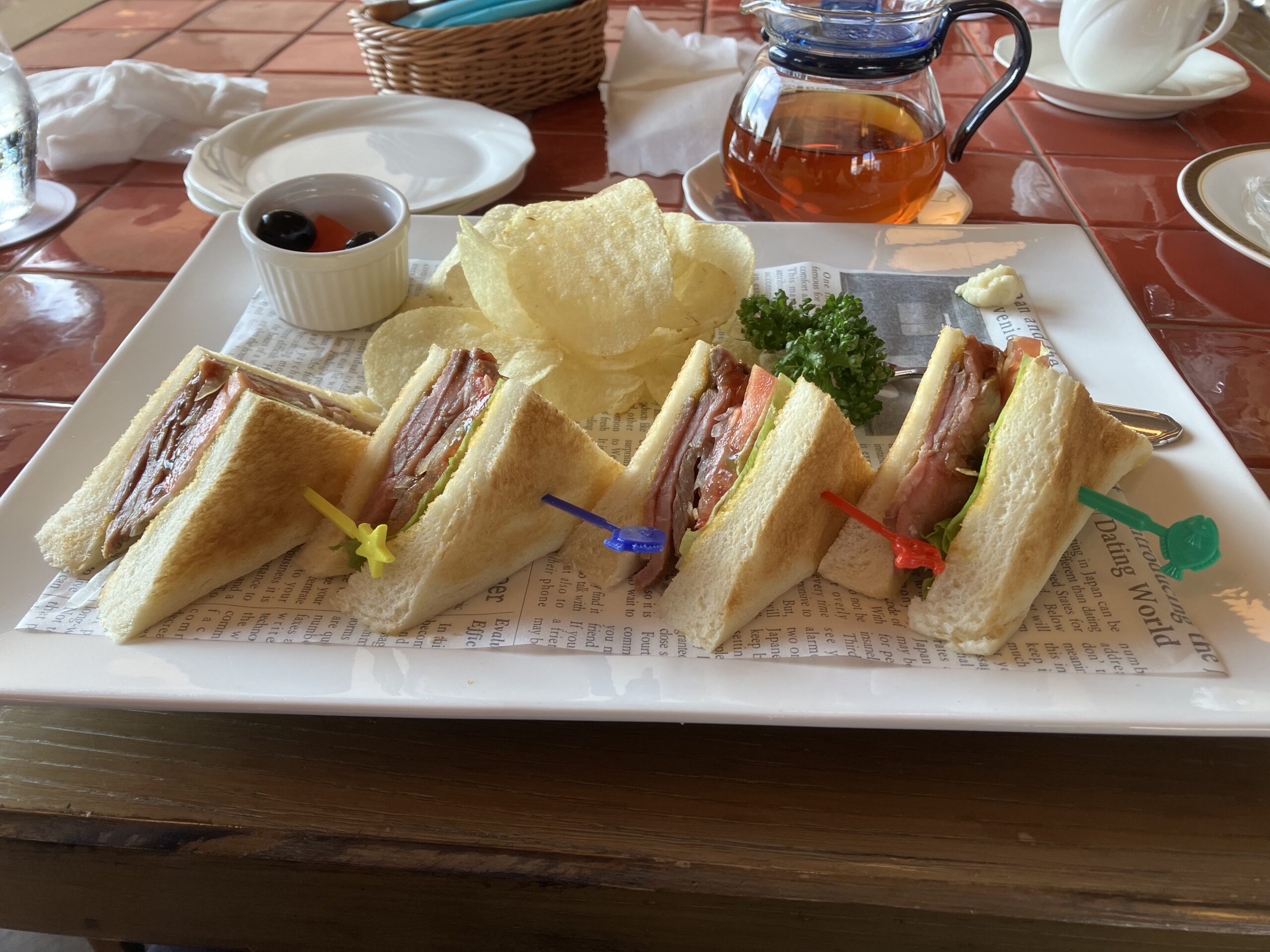 フルーツパーク富士屋ホテルのフルーツカフェ「ベラヴィスタ」のローストビサンドウィッチを紹介します。